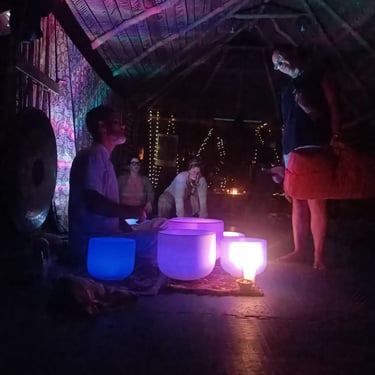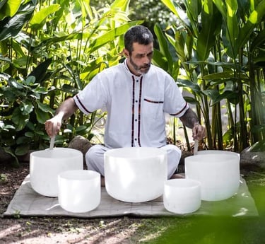 Step into a world where sound becomes medicine. With over a decade of experience in retreat settings and a lifetime in music, I offer tailored sound healing sessions for private retreats, hotels, ceremonies, and celebrations. Whether it's an intimate gathering or a large-scale event, each experience is crafted with intention—using crystal bowls, chimes, gongs, and voice to create a deeply healing atmosphere.